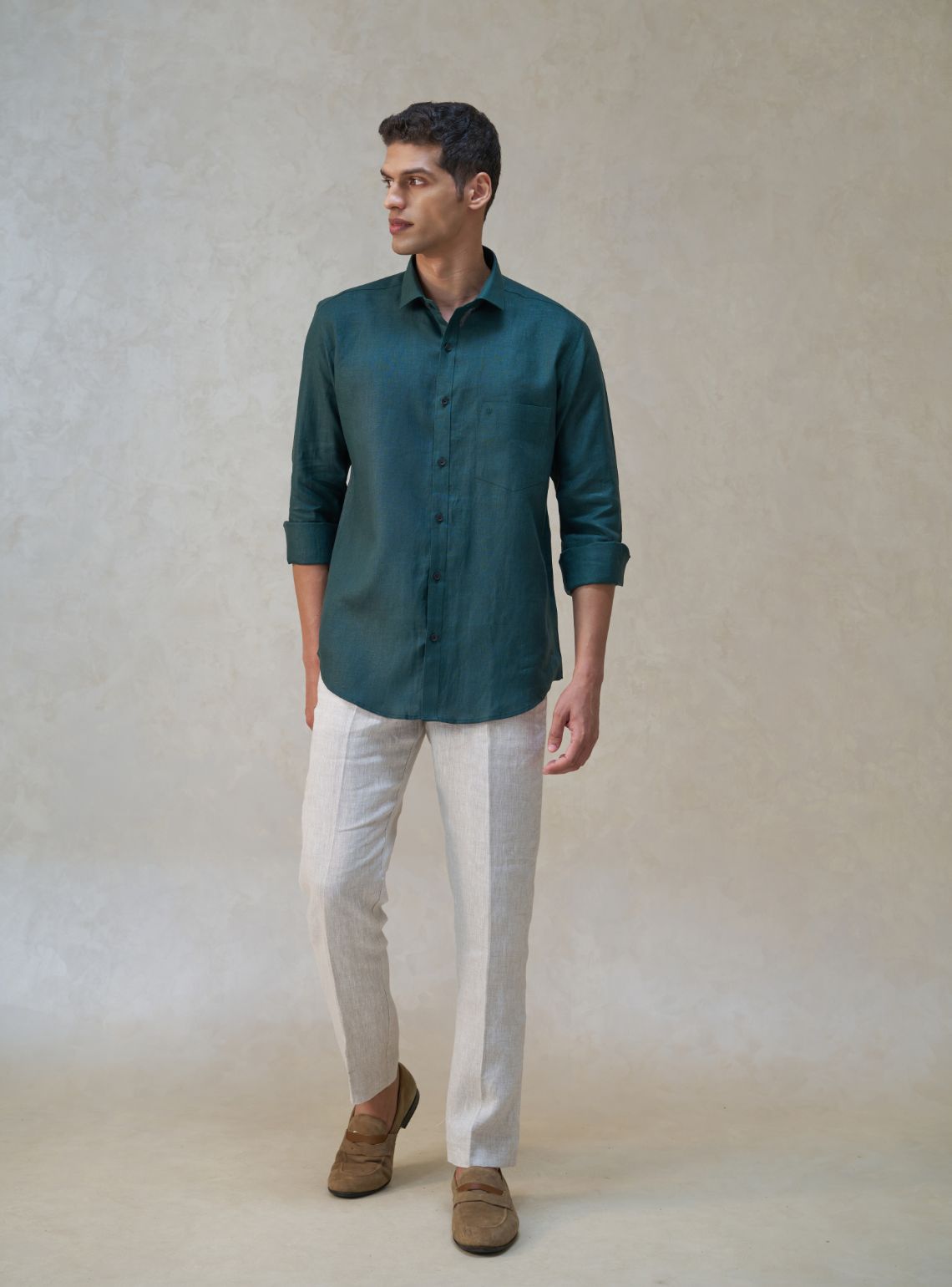 Premium linen crafted from natural flax fibres for superior breathability, lightweight comfort, and a relaxed yet refined feel.