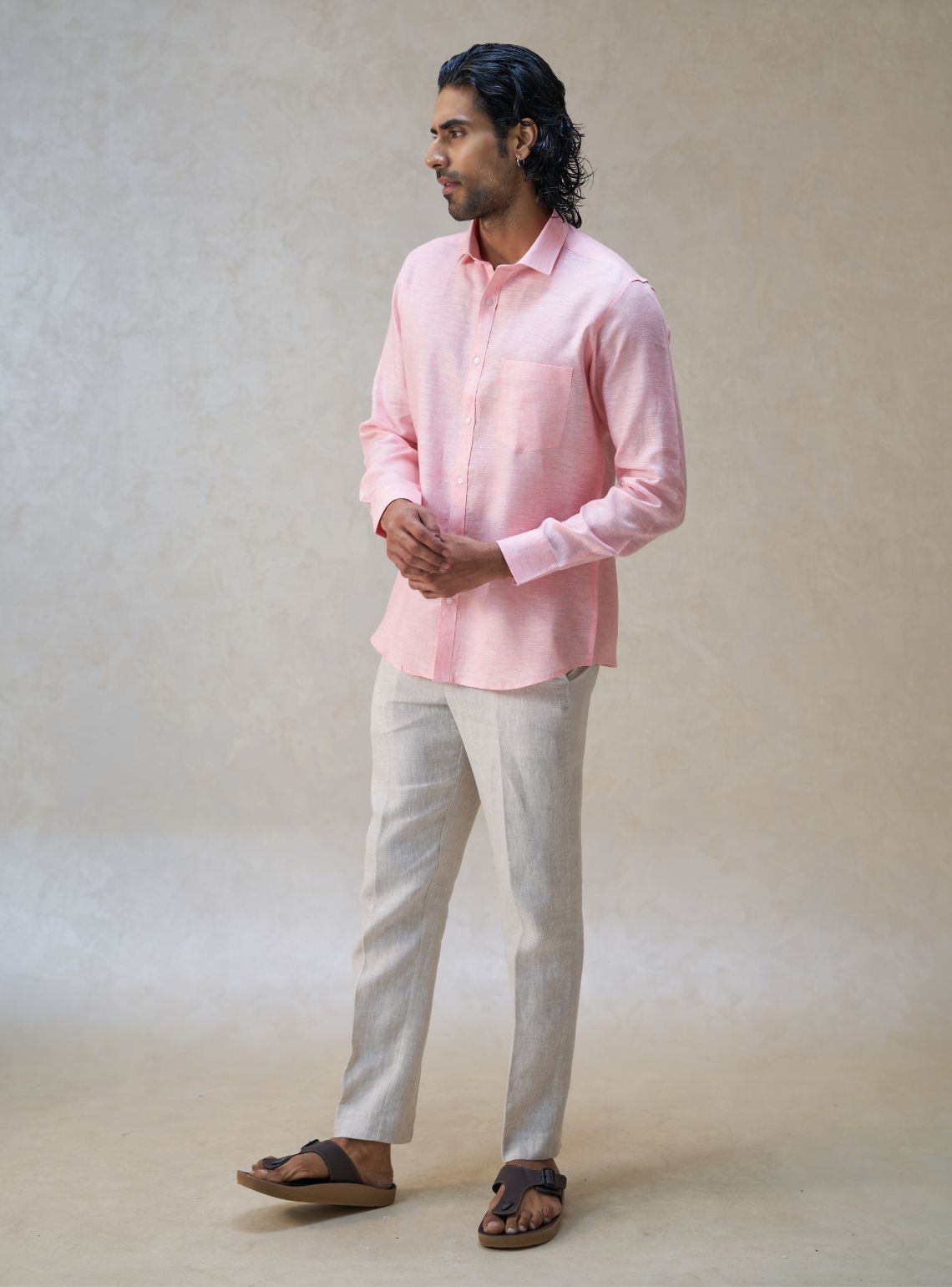 Premium linen crafted from natural flax fibres for superior breathability, lightweight comfort, and a relaxed yet refined feel.