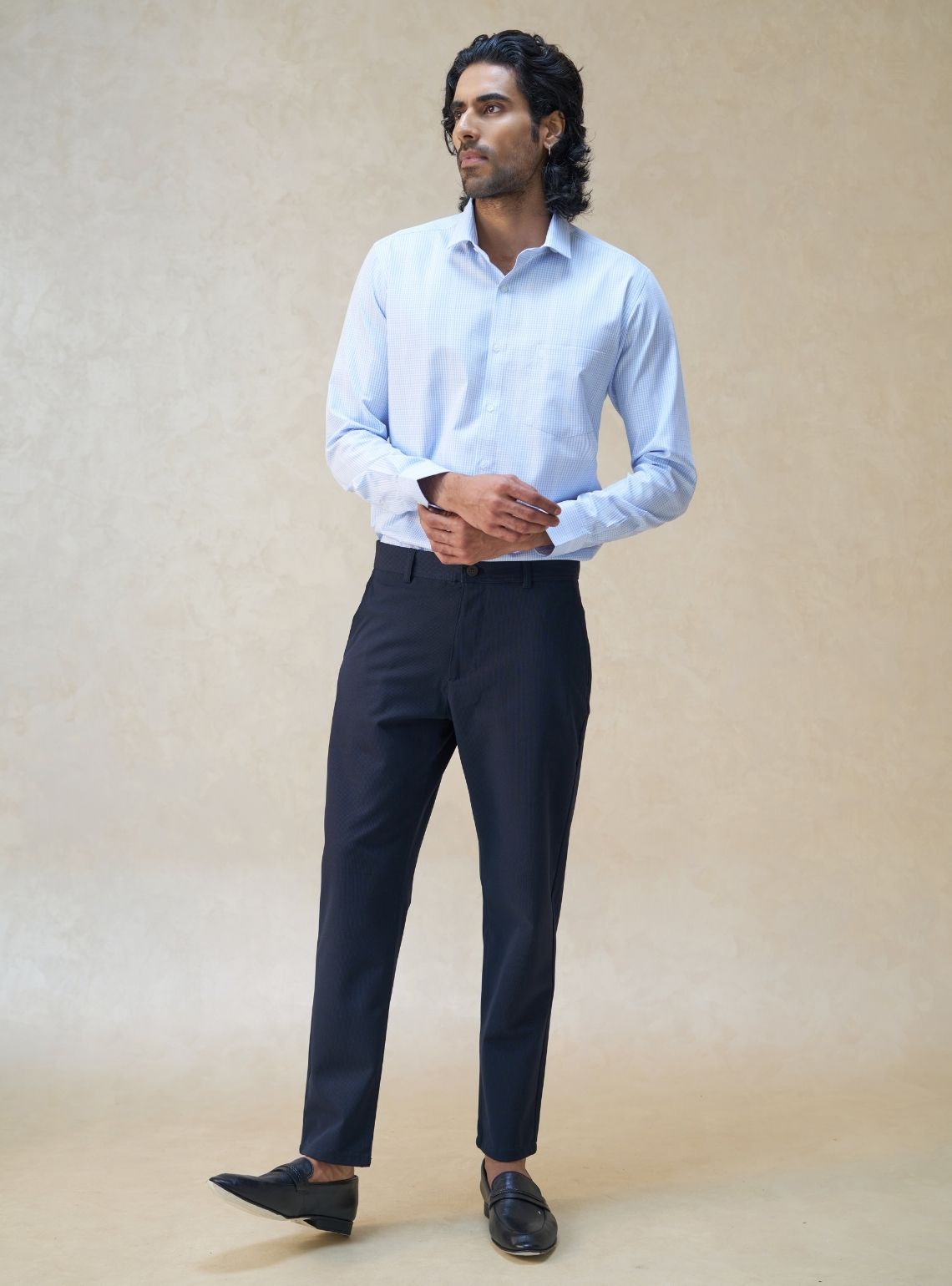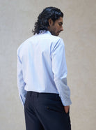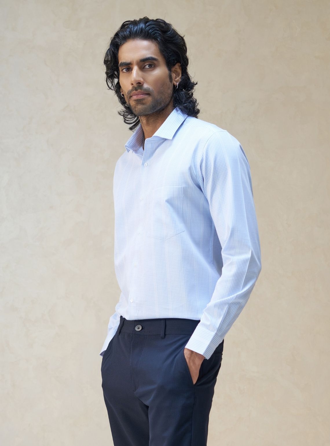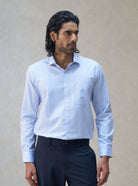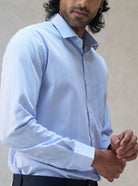 Crafted from premium Giza cotton, this light blue shirt delivers a refined balance of softness, breathability, and structure. The subtle hue lends a fresh, understated elegance, making it ideal for formal settings as well as elevated everyday wear. Designed for all-day comfort, it offers a smooth hand feel with a polished finish.