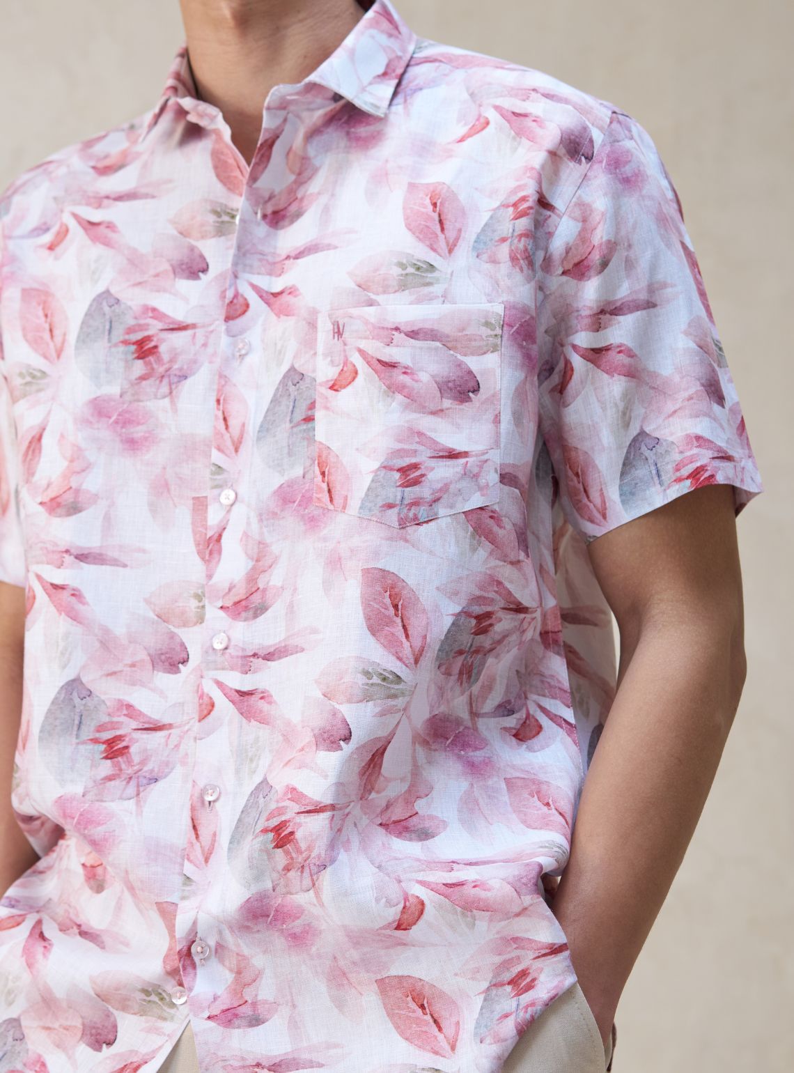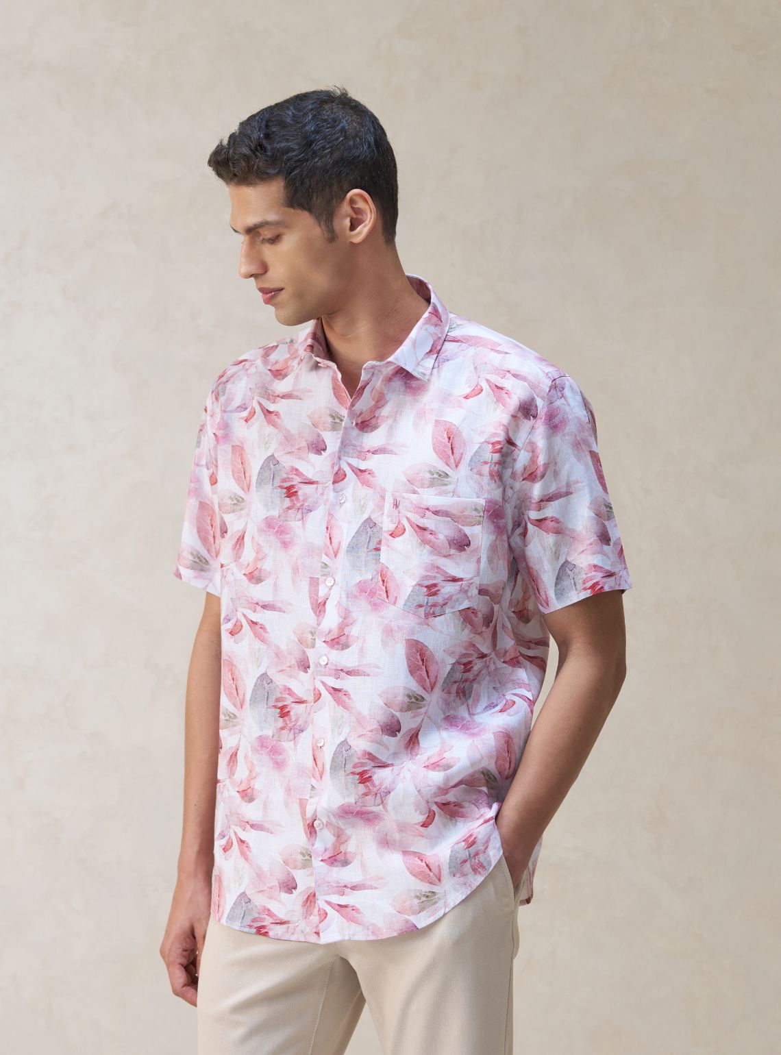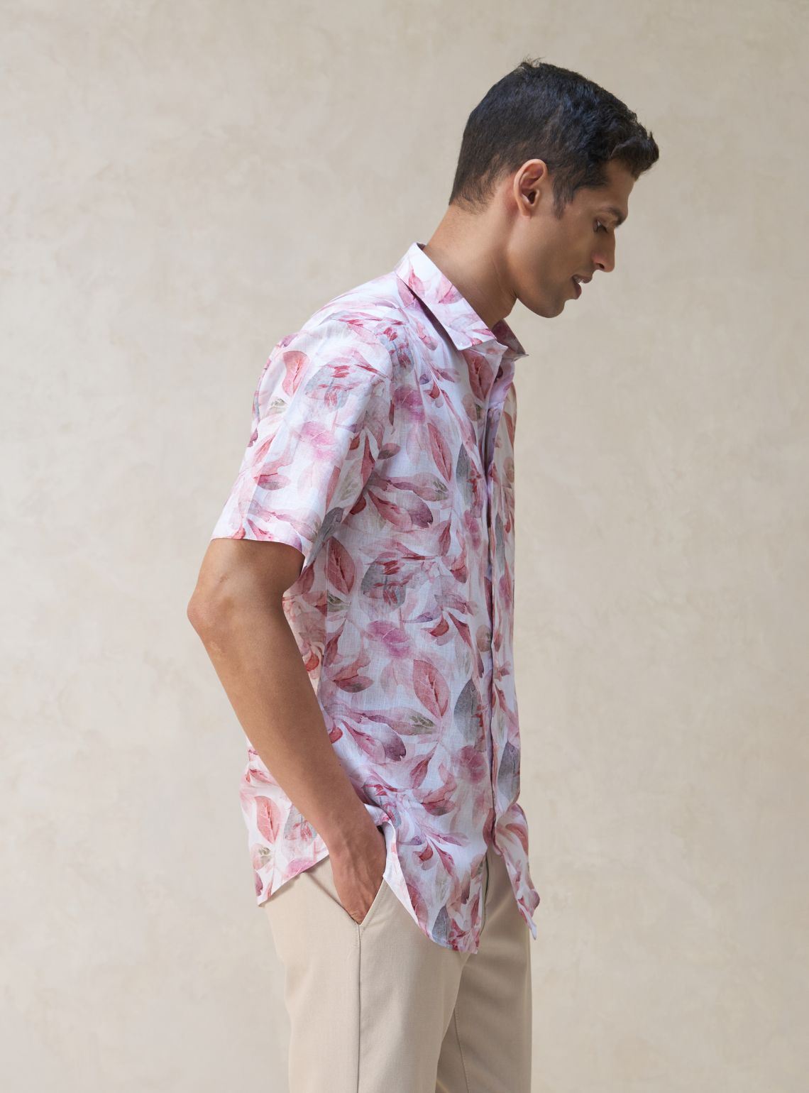 Elevate your summer wardrobe with the Floral Blush Shirt, a masterpiece of comfort and subtle elegance. Expertly crafted from 100% Pure Linen, this shirt offers the luxurious breathability and distinct texture that only premium natural fibers can provide