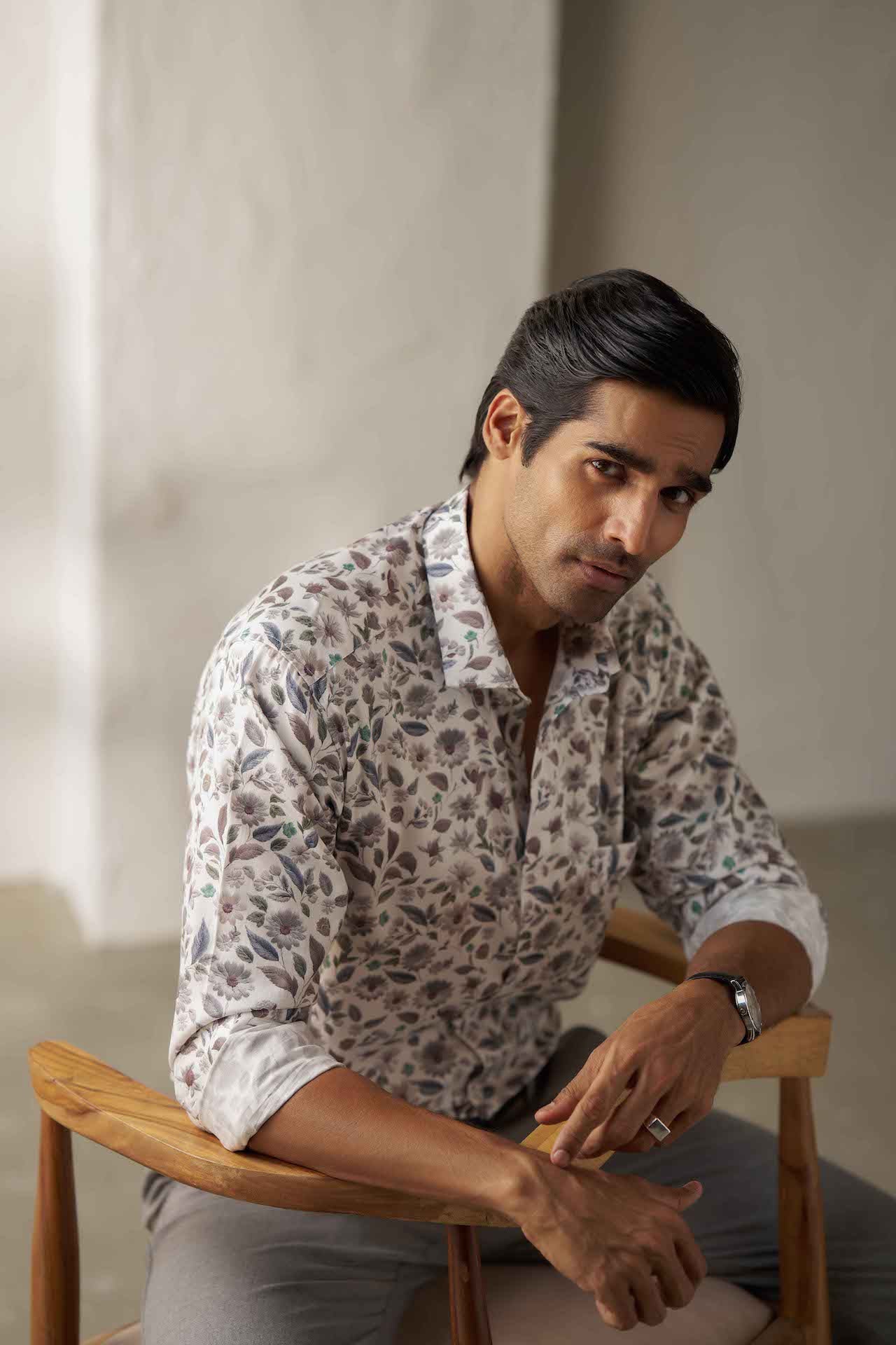A vibrant yet classy multi-colour floral printed shirt crafted to make a refined statement.The intricate floral artwork sits on a soft neutral base, ideal for vacations, dinners, and smart-casual occasions where style meets comfort.