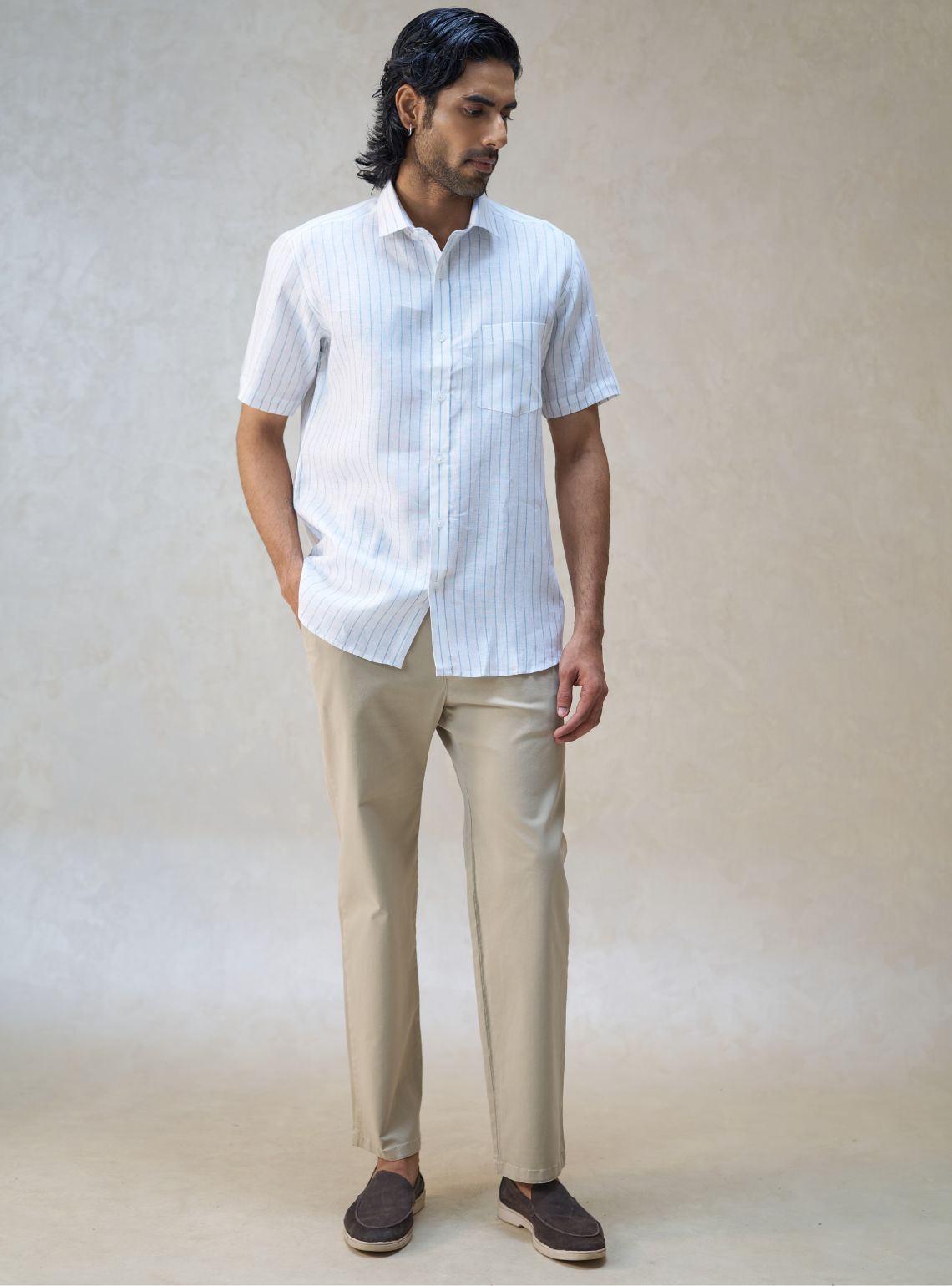 Linen’s inherent texture adds a refined, understated character, making the shirt suitable for both casual and smart wear
