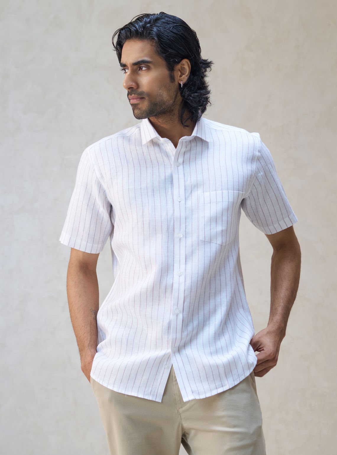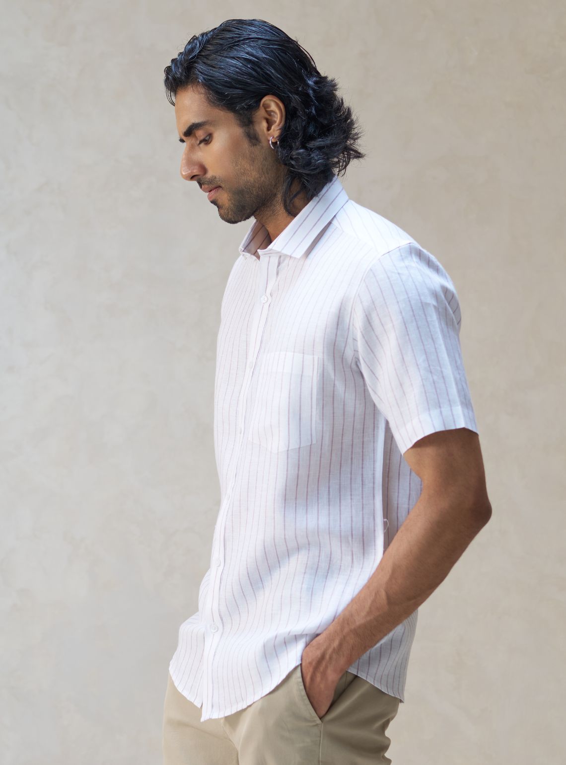 Mild White Stripe Linen Shirt