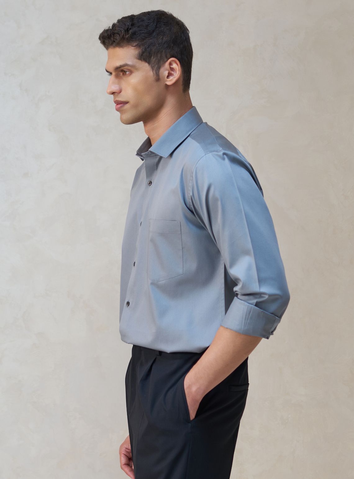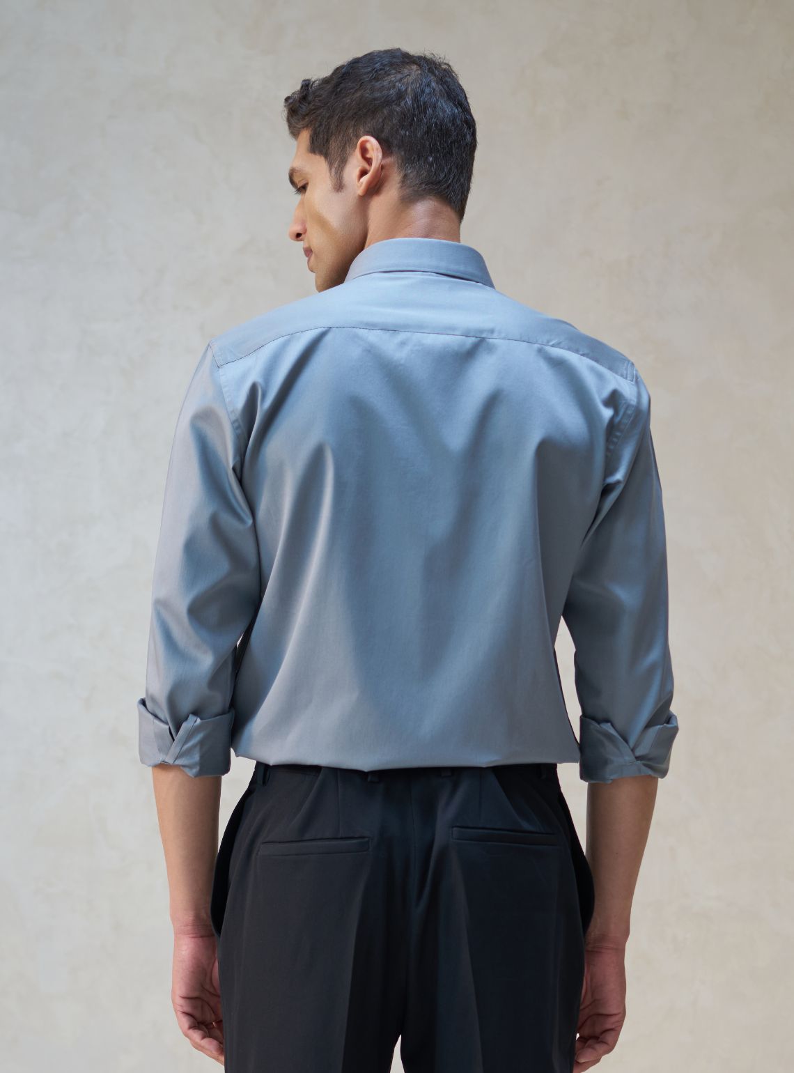 Crafted from breathable 100% cotton, this shirt delivers all-day comfort with a refined finish. Designed with a clean silhouette and smooth texture, it transitions effortlessly from work hours to evening outings. The structured collar and tailored fit add a polished touch, while the soft hand-feel ensures ease of movement and wearability throughout the day.