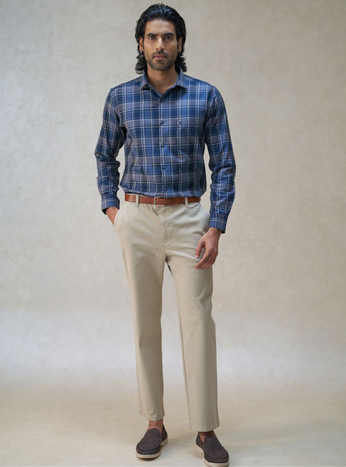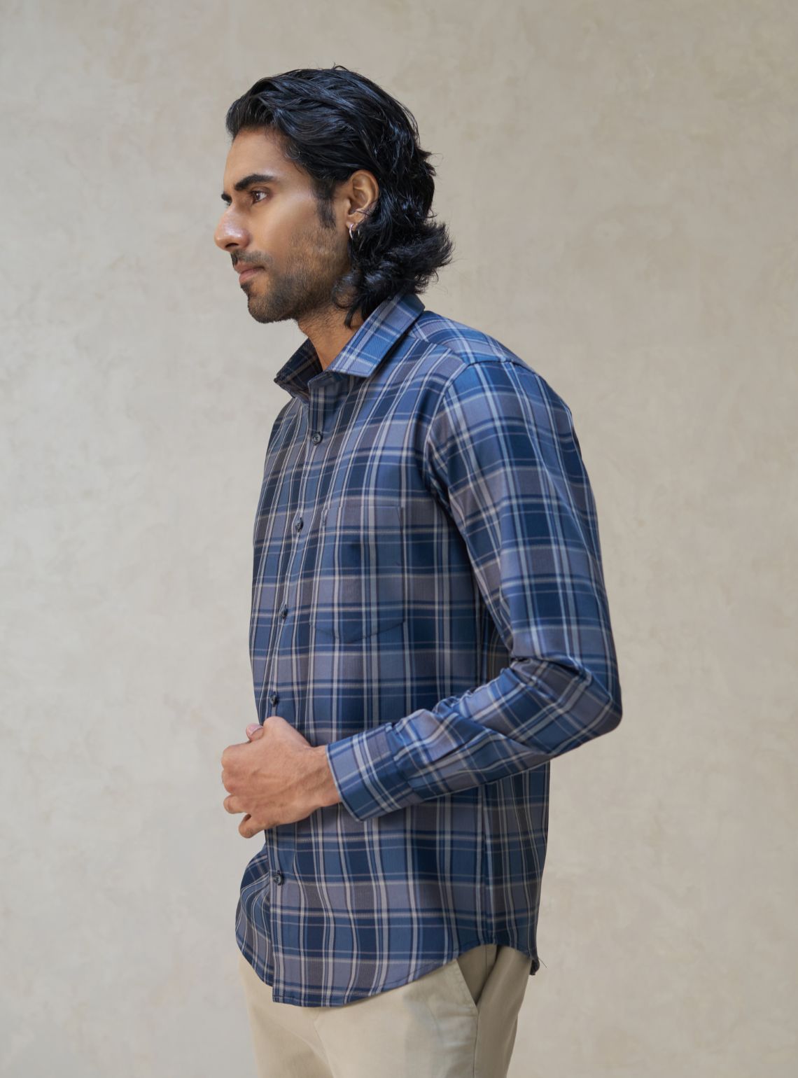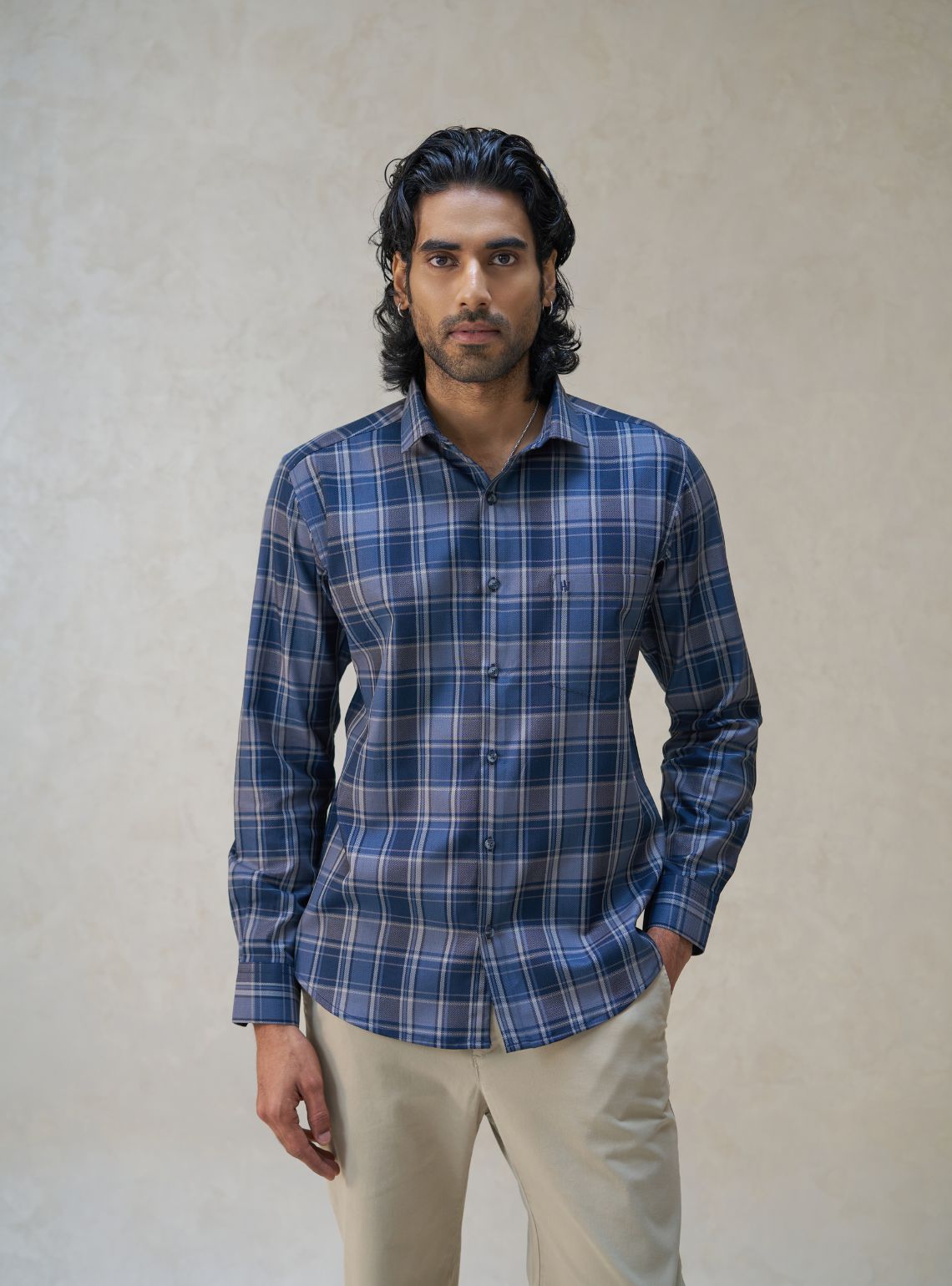 The Deep Atlantic Shirt features a refined check pattern in rich blue tones, offering a perfect balance of style and comfort. Crafted from premium cotton, it delivers a soft feel, breathability, and a sharp silhouette—ideal for workwear and smart-casual occasions.