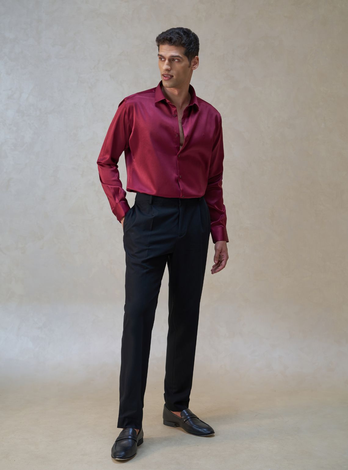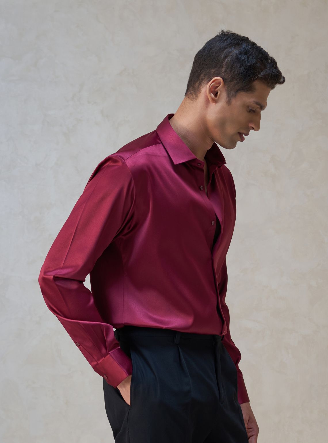 This shirt is crafted to deliver a sleek, elevated look with minimal effort. Made from smooth polyester fabric, it offers a soft hand feel, subtle sheen, and a fluid drape that enhances its tailored silhouette. Designed for long hours of wear, it resists wrinkles and maintains its structure, making it a dependable choice for formal occasions, evening wear, and refined everyday styling.