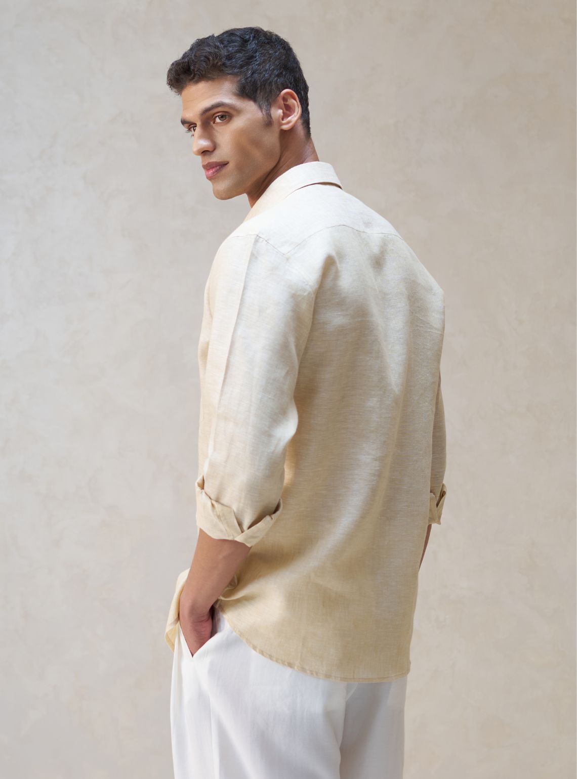 Crafted from 100% pure linen, this shirt offers exceptional breathability and effortless comfort. The lightweight fabric ensures ease of movement while maintaining a refined structure. Designed for warm climates, it delivers a relaxed yet polished look that transitions seamlessly from casual daytime wear to elevated evening styling.