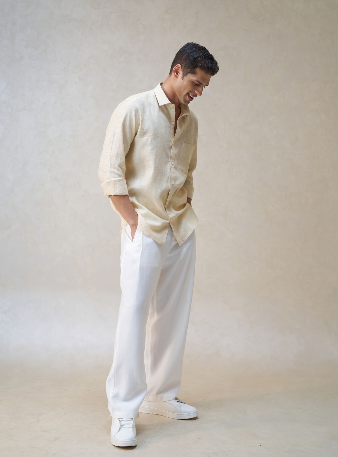 Premium linen crafted from natural flax fibres for superior breathability, lightweight comfort, and a relaxed yet refined feel.